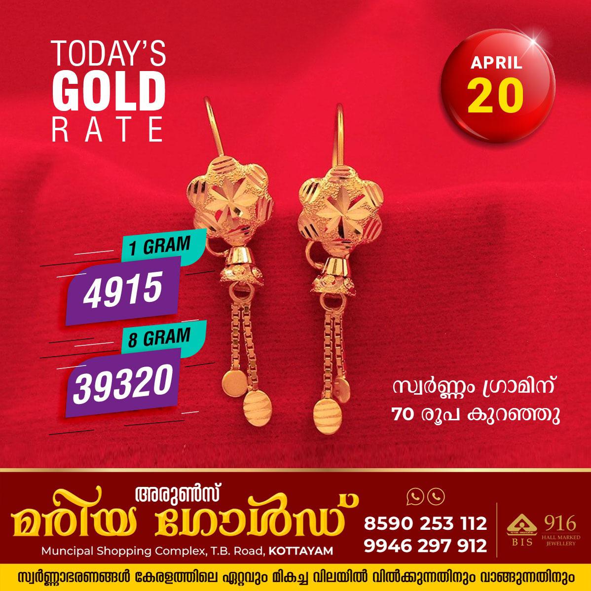 കൊച്ചി :സംസ്ഥാനത്ത് സ്വർണവില കുറഞ്ഞു .പവന് 560 രൂപ കുറഞ്ഞ് 39,320 രൂപയിലെത്തി .ഗ്രാമിന് 70 രൂപ കുറഞ്ഞ് 4,915 രൂപയിലെത്തി.