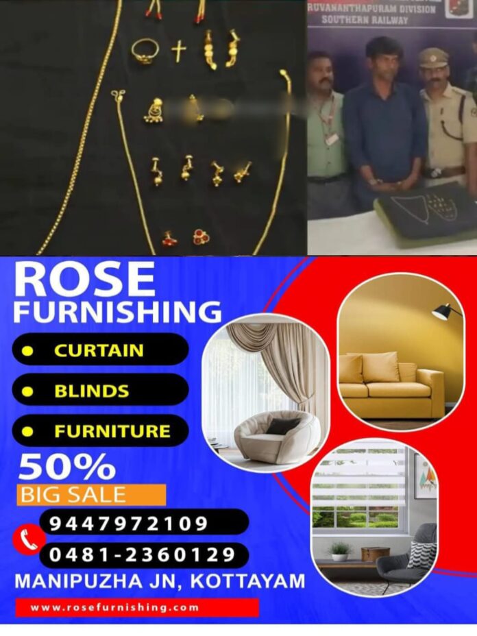തമിഴ്നാട് സ്വദേശി ശ്യാം ക്രിസ്പിനെ പിടികൂടിയത് 200ഓളം ക്യാമറകള്‍ പരിശോധിച്ച ശേഷം. ഇയാള്‍ ഒളിപ്പിച്ചുവെച്ച ആഭരണങ്ങളും വീണ്ടെടുത്ത് ആർപിഎഫും റെയില്‍വേ പൊലീസും.