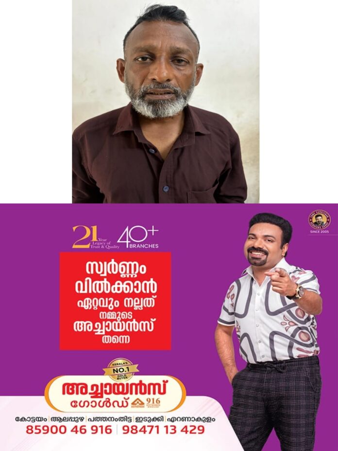 തിരുവനന്തപുരം മണ്ണൂർക്കര കുറ്റിച്ചൽ പരുത്തിപ്പള്ളി സ്കൂളിന്സമീപം ചെമ്മണ്ണംകുഴി വീട്ടിൽ അമീർ ഹംസ (56) ആണ് കോട്ടയം ഈസ്റ്റ് പോലീസിൻ്റെ പിടിയിലായത്.