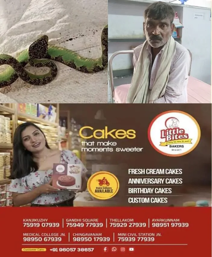 പിന്നെ കടിച്ച പാമ്പിനെ വിട്ടില്ല. പിടിച്ചു ചാക്കിലാക്കി ആശുപത്രി വരെ ഒപ്പം കൂട്ടി ഡോക്ടറിന് മുമ്പിൽ എത്തിച്ചു. കഴിഞ്ഞ ദിവസം ഗൂഡല്ലൂർ പെരിയശോലയിലെ ഒരു സ്വകാര്യ കാപ്പിത്തോട്ടത്തിലായിരുന്നു ആശങ്കയും ഒപ്പം അത്ഭുതവുമുണ്ടാക്കിയ സംഭവം.