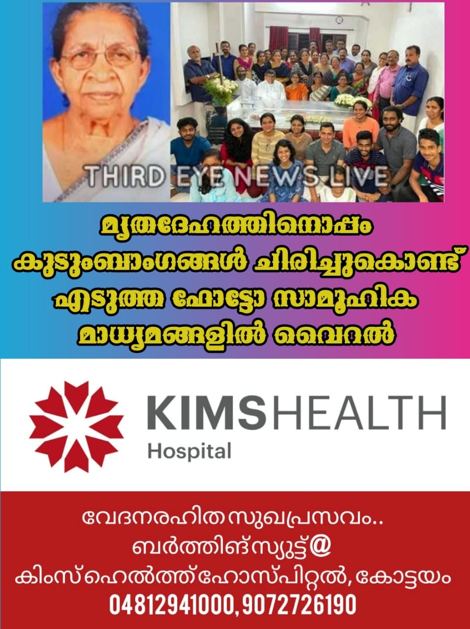 മരണപ്പെട്ട അമ്മച്ചിയെ സന്തോഷത്തോടെ യാത്ര അയക്കാൻ മൃതദേഹത്തിനൊപ്പം ചിരിച്ച് ഫോട്ടോ എടുത്ത് കുടുംബാംഗങ്ങള്‍ ;മല്ലപ്പള്ളി സ്വദേശിനിയുടെ മൃതദേഹത്തിനരികിൽ നിന്ന് കുടുംബാംഗങ്ങൾ എടുത്ത ഫോട്ടോ സാമൂഹിക മാധ്യമങ്ങളില്‍ വൈറൽ;പ്രതികരണവുമായി കുടുംബം