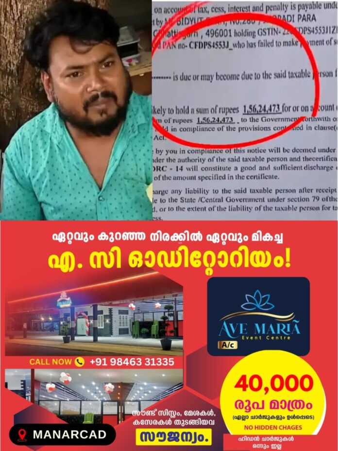 കൊച്ചി : നെടുമ്പാശ്ശേരിയിലെ ഇതര സംസ്ഥാനക്കാരനായ മുറുക്കാൻ കട ഉടമയ്ക്ക് ഒരു കോടി അമ്പത്തിയാറ് ലക്ഷം രൂപ പിഴയിട്ട് സെൻട്രല് ജിഎസ്ടിയില് നിന്നും നോട്ടീസ്. അഞ്ച് സംസ്ഥാനങ്ങളില് അദ്ദേഹത്തിന്റെ പാൻ കാർഡ് നമ്പർ ഉപയോഗിച്ച് നടത്തിയ പ്ലൈവുഡ് ഇടപാടുകള്ക്ക് ജിഎസ്ടി അടച്ചില്ലെന്ന കാരണം കാണിച്ചാണ് പശ്ചിമ ബംഗാള് സ്വദേശി ബിദ്യുത് ഷെയ്ഖിന് നോട്ടീസ് കിട്ടിയത്.