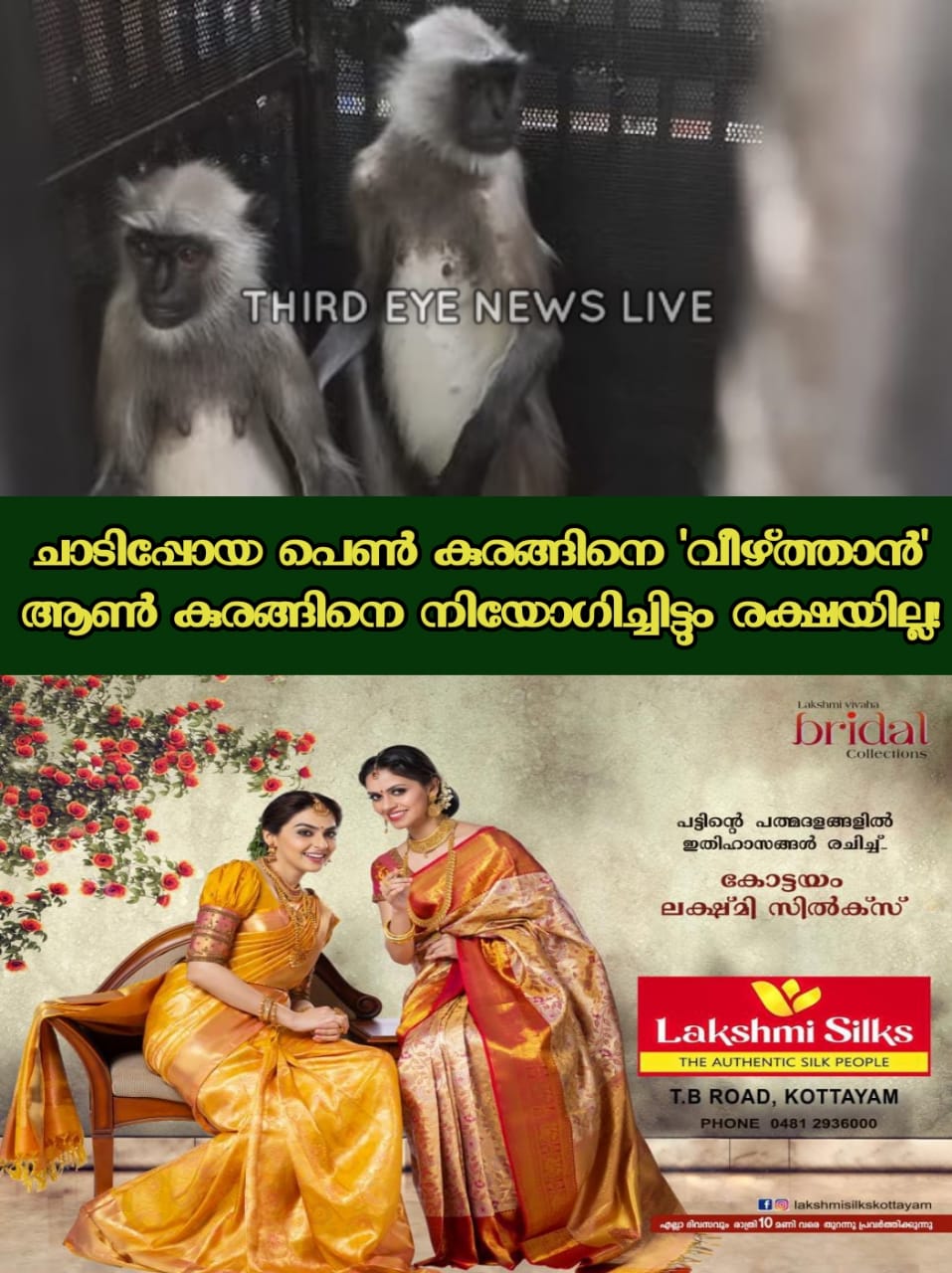 മൂന്നു ദിവസമായി മരത്തിനു മുകളിൽ കഴിയുന്ന ഹനുമാൻ കുരങ്ങ് ഉടനെങ്ങും കൂട്ടിൽ കയറുന്ന ലക്ഷണമില്ല. ഇന്നലെ രണ്ടു തവണ മരത്തിൽ നിന്നിറങ്ങിയ കുരങ്ങൻ പഴങ്ങളും എടുത്ത് തിരികെ കയറി. ഇപ്പോഴും മരത്തിനു മുകളിൽ തമ്പടിച്ചിരിക്കുന്ന പെൺ കുരങ്ങിനെ ‘വീഴ്ത്താനായി’ പ്രത്യേക കൂട് സജ്ജീകരിച്ച് ആൺ കുരങ്ങിനെ മരത്തിനു ചുവട്ടിലേക്കു മാറ്റി.