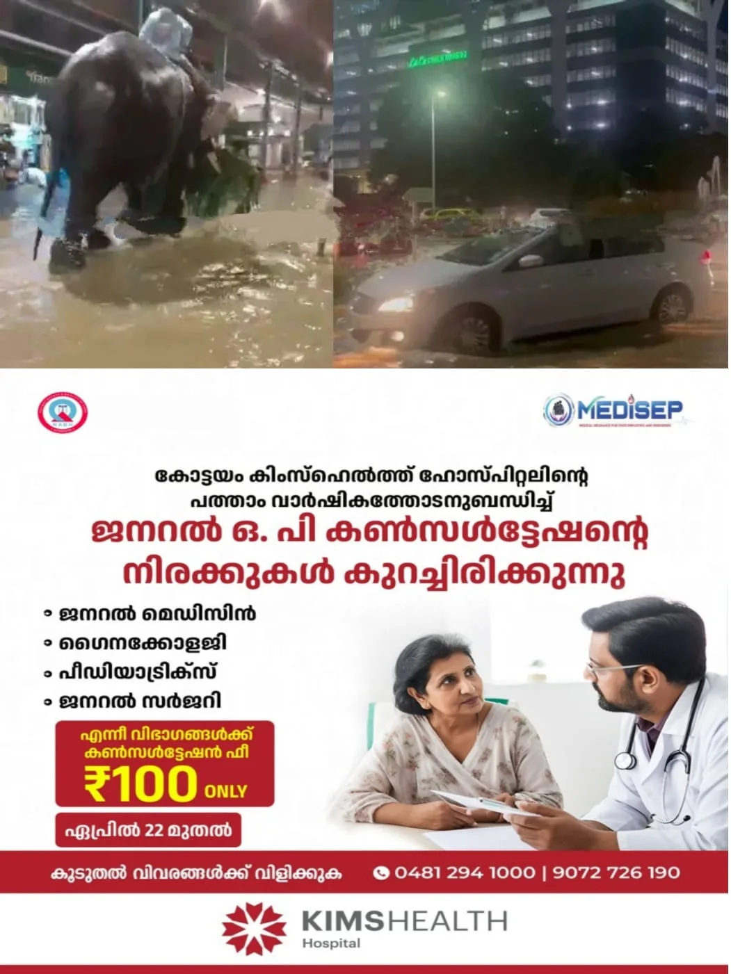 മാതൃശിശു സംരക്ഷണ കേന്ദ്രത്തിലെ താഴത്തെ നിലയിലെ വാർഡുകളിലാണ് വെള്ളം കയറിയത്.