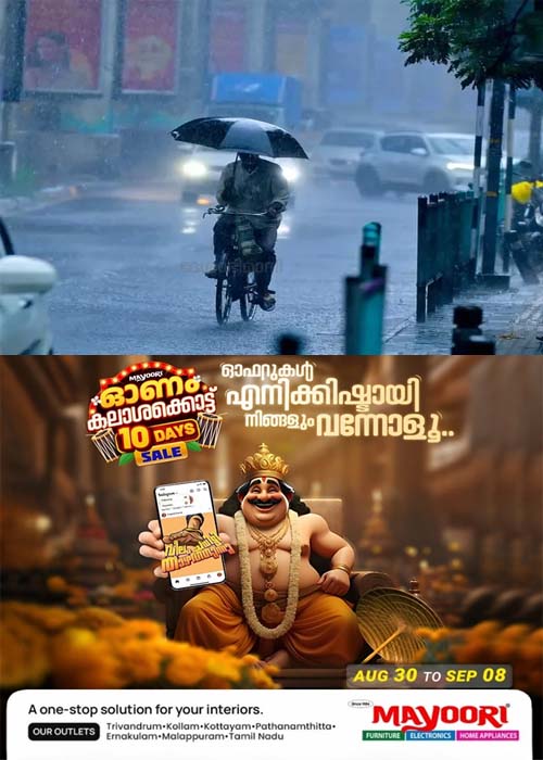 കേരളത്തിൽ ഒറ്റപ്പെട്ടയിടങ്ങളിൽ 08/09/2025 മുതൽ 10/09/2025 വരെ ഇടിമിന്നലോടുകൂടിയ മഴയ്ക്കും മണിക്കൂറിൽ 30 മുതൽ 40 കിലോമീറ്റർ വരെ വേഗതയിൽ ശക്തമായ കാറ്റിനും സാധ്യതയുണ്ടെന്ന് കേന്ദ്ര കാലാവസ്ഥ വകുപ്പ് അറിയിച്ചു.