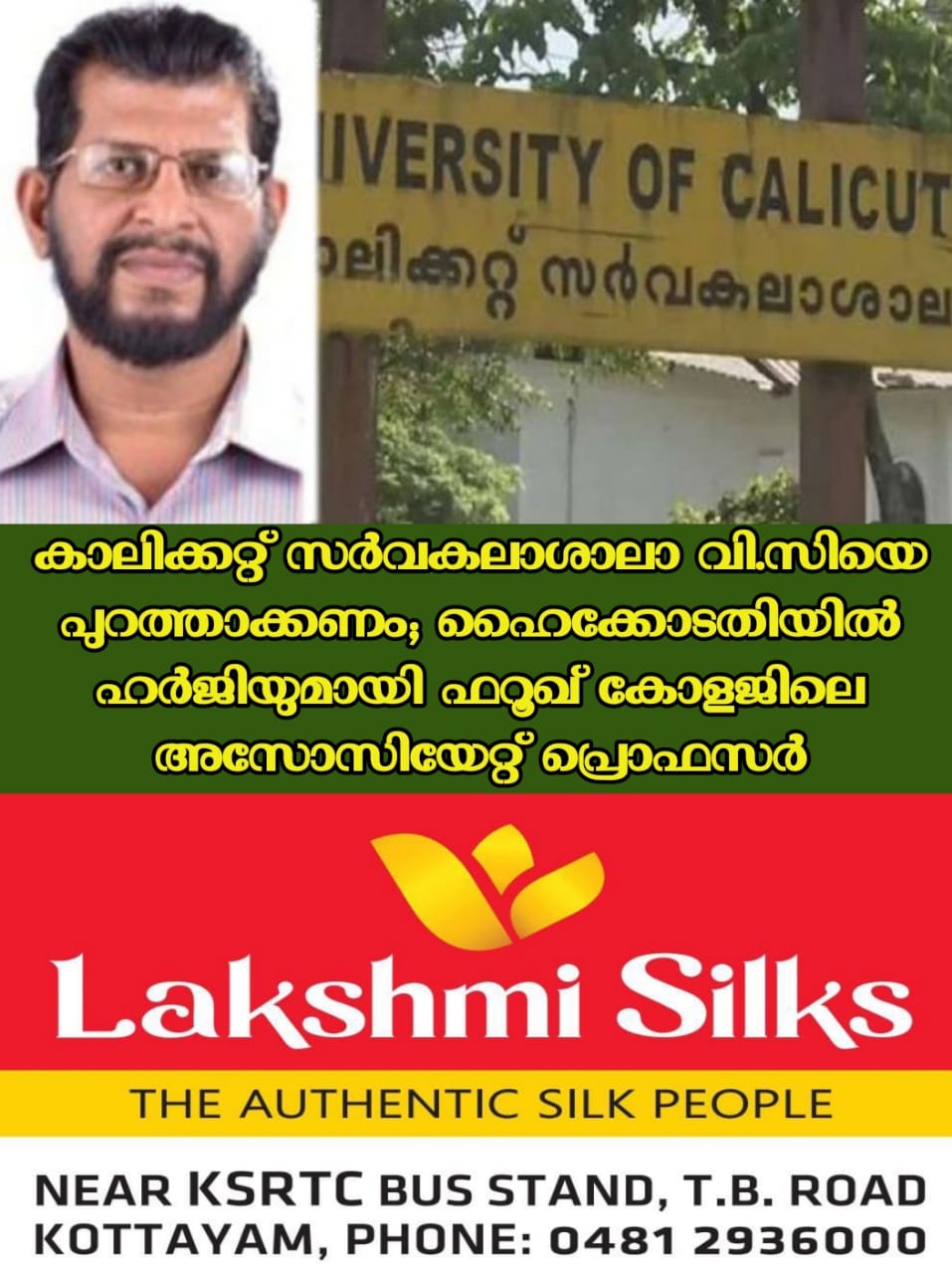 യു.ജി.സി മാനദണ്ഡങ്ങൾക്ക് വിരുദ്ധമായി സെർച്ച് കമ്മിറ്റി രൂപീകരിച്ച് നിയമനം ; കാലിക്കറ്റ് സർവകലാശാലാ വി.സിയെ പുറത്താക്കണം; ഹൈക്കോടതിയിൽ ഹർജിയുമായി ഫറൂഖ് കോളജിലെ അസോസിയേറ്റ് പ്രൊഫസർ