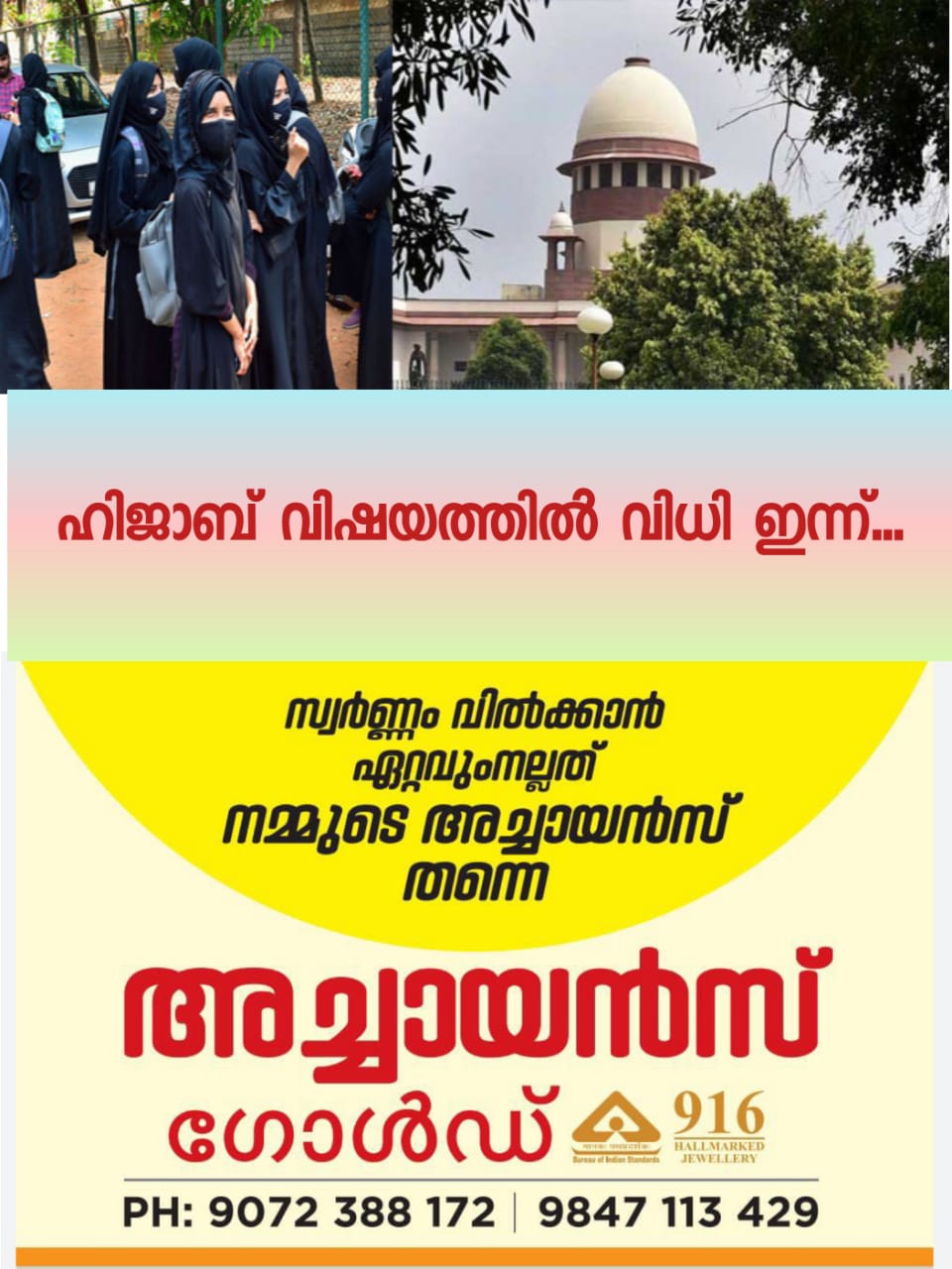 കർണ്ണാടകയിലെ വിദ്യാഭ്യാസ സ്ഥാപനങ്ങളിൽ ഹിജാബ് നിയന്ത്രിച്ച സർക്കാർ തിരുമാനത്തിനെതിരായ ഹർജികളിൽ വിധി ഇന്ന്. ജസ്റ്റിസുമാരായ ഹേമന്ത് ഗുപ്ത, സുധാൻഷു ധൂലിയ എന്നിവരടങ്ങിയ ബെഞ്ച് 10 ദിവസത്തെ വാദം കേട്ട ശേഷം സെപ്റ്റംബർ 22 ന് ഹർജികളിൽ വിധി പറയാൻ മാറ്റിയിരുന്നു.