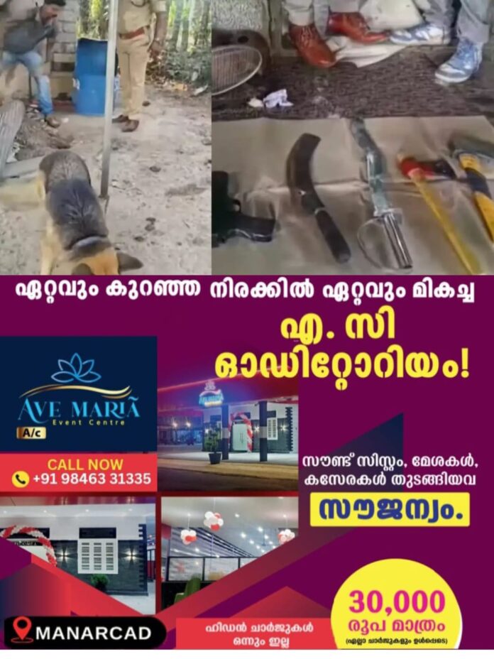 വീടിന് സുരക്ഷ ഒരുക്കാൻ ജർമൻ ഷെപേർഡ്, ലാബ്, റോട്ട്വീലർ നായകളെ ചുറ്റും കെട്ടിയിരുന്നു. നായയെ കെട്ടിയിരുന്ന ഷീറ്റിന്റെ അടിയില് ചാക്കില് ഒളിപ്പിച്ച നിലയില് ആയിരുന്നു കഞ്ചാവ്. പ്രതി അനസിനെ കണ്ടെത്താൻ അന്വേഷണം ആരംഭിച്ചു.