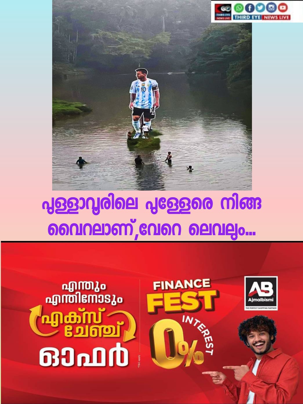 ഖത്തർ വേദിയാകുന്ന ഫുട്ബാൾ ലോകകപ്പ് പടിവാതിൽക്കൽ എത്തിനിൽക്കെ കോഴിക്കോട് ചാത്തമംഗലം എൻ.ഐ.ടിക്ക് സമീപം ചെറുപുഴയുടെ നടുവിൽ ഇതിഹാസ താരം ലയണൽമെസിയുടെ കൂറ്റൻ കട്ടൗട്ട് ഉയർത്തി ലോകം മുഴുവൻ വൈറലായി പുള്ളാവൂരിലെ അർജന്റീന ഫാൻസ്. ചെറുപുഴയുടെ നടുവിലുള്ള കുഞ്ഞ് തുരുത്തിൽ 30 അടി ഉയരത്തിലും 8 അടി വീതിയിലും ഇളംനീല ജേഴ്സിയിൽ നെഞ്ചും വിരിച്ച് നിൽക്കുന്ന മെസി കോഴിക്കോട് നിന്ന് കടൽ കടന്ന് ഖത്തറിലും അർജന്റീനയിലും യൂറോപ്പിലും അമേരിക്കയിലുമെല്ലാം തരംഗമായി. ലോകമെമ്പാടുമുള്ള അർജന്റീന, മെസി ആരാധകരുടെ ഫാൻ പേജുകളില്ലാം കോഴിക്കോടുകാരുടെ മെസി പ്രേമം സ്ഥാനം പിടിച്ചു. ഫോക്സ് സ്പോർട്സ് അർജന്റീന പോലുള്ള പ്രമുഖ ഓൺലൈൻ മാധ്യമങ്ങളും സംഭവം വാർത്തയാക്കി. കട്ടൗട്ടിന്റെ ഫോട്ടോകളും വീഡിയോയും സാക്ഷാൽ മെസി കാണും എന്ന പ്രതീക്ഷയിലാണ് പുള്ളാവൂരിലെ അർജന്റീന ഫാൻസ്