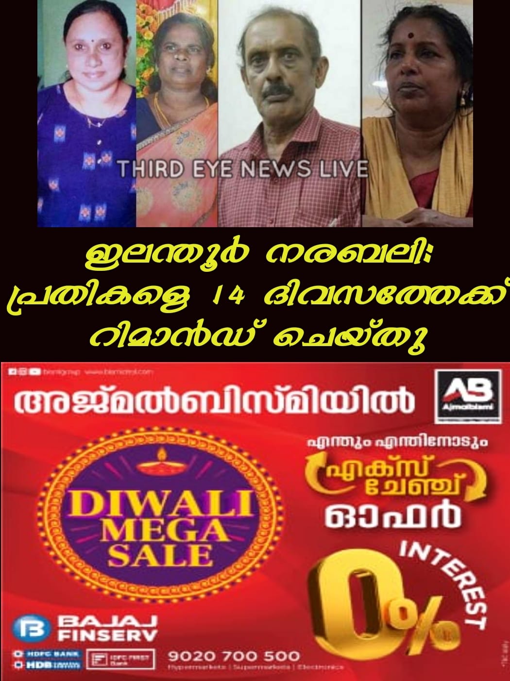 കൊച്ചി: ഇലന്തൂര് നരബലി കേസില് പ്രതികളെ 14 ദിവസത്തേക്ക് റിമാന്ഡ് ചെയ്തു. എറണാകുളം ഒന്നാം ക്ലാസ് ജുഡീഷ്യല് മജിസ്ട്രേറ്റ് കോടതിയുടേതാണ് നടപടി. മുഹമ്മദ് ഷാഫി, ഭഗവല് സിങ് എന്നിവരെ കാക്കനാട് ജില്ലാ ജയിലേക്കും, ലൈലയെ വനിതാ ജയിലിലേക്കും മാറ്റും. പ്രതികള്ക്ക് വേണ്ടിയുള്ള കസ്റ്റഡി അപേക്ഷ ഇന്ന് തന്നെ നല്കുമെന്ന് പോലീസ് അറിയിച്ചു.