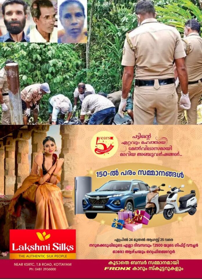 ഇതോടെ കേസിൽ അന്വേഷണം ഊര്ജ്ജിതമാക്കാന് പൊലീസ് തീരുമാനിക്കുകയായിരുന്നു. ഇവര്ക്കൊപ്പം താമസിച്ചിരുന്ന മേരിക്കുട്ടിയുടെ ഇളയമകന് സജിക്കായി പൊലീസ് അന്വേഷണം ഊര്ജ്ജിതമാക്കി. മേരിക്കുട്ടിയെയും റെജിയെയും കാണാനില്ലെന്ന് കാട്ടി മേരിക്കുട്ടിയുടെ മകള് സിനി ഞായറാഴ്ച പൊലീസില് പരാതി നല്കുകയായിരുന്നു. തിങ്കളാഴ്ച രാവിലെ ഇവരുടെ വീടിന് സമീപത്തെ പറമ്പില് ഒരു പുരുഷന്റെ കാലിന്റെ ഭാഗം മണ്ണിനടിയില് നിന്നും പുറത്തേക്ക് നില്ക്കുന്നത് നാട്ടുകാരാണ് കണ്ടത്. ഉടനെ പൊലീസിനെ അറിയിക്കുകയായിരുന്നു. തുടര്ന്ന് ഫോറന്സിക് സംഘത്തിന്റെ നേതൃത്വത്തില് മണ്ണുമാറ്റി പരിശോധന നടത്തുകയായിരുന്നു. ഈ പരിശോധനയില് രണ്ട് മൃതദേഹങ്ങള് കണ്ടെത്തുകയായിരുന്നു. ഒരേകുഴിയിലായിരുന്നു രണ്ട് മൃതദേഹങ്ങള്. ഇതില് കുമ്മായം വിതറിയിരുന്നു.