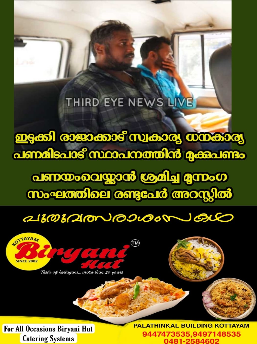 തുടർന്ന് ധനകാര്യ പണമിടപാട് സ്ഥാപനത്തിലെ ഉദ്യോഗസ്ഥർ രാജാക്കാട് പോലീസിൽ വിവരമറിയിച്ചതിനെ തുടർന്ന് ചൊവ്വാഴ്ച പ്രതികളെ ചോദ്യംചെയ്യാനായി വിളിച്ചുവരുത്തി അറസ്റ്റ് ചെയ്യുകയായിരുന്നു. പ്രതികളെ അടിമാലി കോടതിയിൽ ഹാജരാക്കി റിമാൻഡുചെയ്തു.