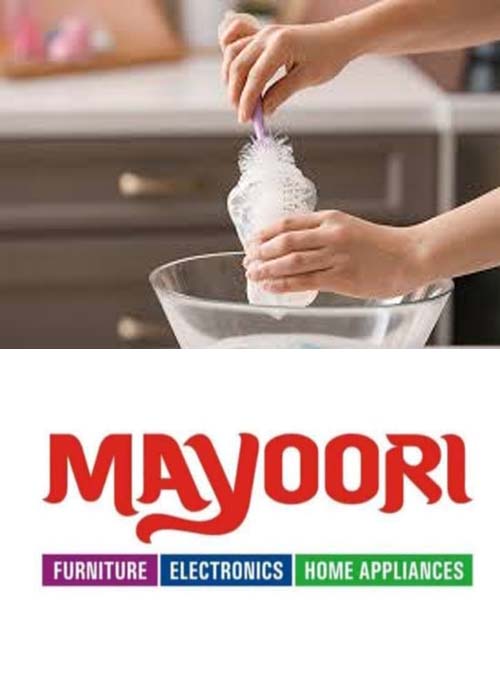 ചൂടുവെള്ളവും ഡിഷ് വാഷിങ് ലി ക്വിഡും ചേർത്ത മിശ്രിതത്തിലേക്ക് ഓ രോ ഭാഗങ്ങളും മുക്കി വയ്ക്കാം. അതിനുശേഷം ബോട്ടിൽ ബ്രഷ് ഉപയോഗിച്ച് ഓരോ ഭാഗവും ഉരച്ചു കഴുകാം.
