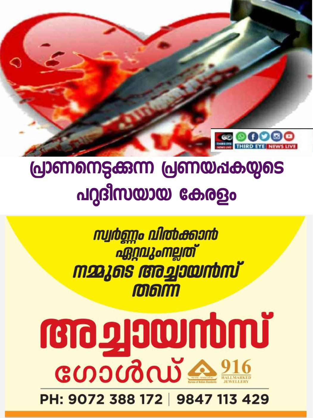 നിരാശാ കാമുകന്മാർ കൊലപാതികളാകുന്ന പ്രത്യേക സ്ഥിതിവിശേഷമാണ് ഇന്ന് കേരളത്തിലുള്ളത്;സ്നേഹിച്ച പെണ്ണ് തന്നിൽ നിന്നകന്നാൽ അവളെ അതിക്രൂരമായി കൊല്ലുന്നത് സംസ്ഥാനത്ത് ഇപ്പോൾ സാധാരണയാകുന്നു.പ്രണയം നിരസിച്ചാൽ കൊല…ദൈവത്തിന്റെ സ്വന്തം നാട്ടിലെ യുവതലമുറയ്ക്കിതെന്തു പറ്റി…