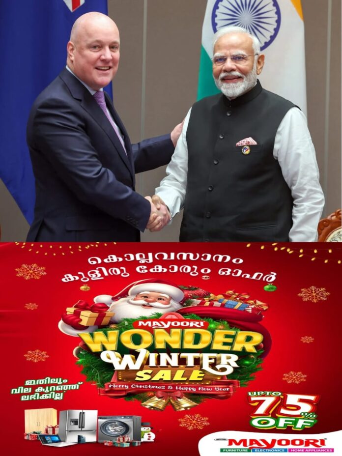 ന്യൂഡല്‍ഹി: സ്വതന്ത്ര വ്യാപാര കരാറില്‍ (FTA) ഒപ്പ് വെച്ച് ഇന്ത്യയും ന്യൂസിലന്‍ഡും. തിങ്കളാഴ്ച പ്രധാനമന്ത്രി നരേന്ദ്ര മോദിയും ന്യൂസിലൻഡ് പ്രധാനമന്ത്രി ക്രിസ്റ്റഫർ ലക്സണും നടത്തിയ ടെലിഫോണ്‍ സംഭാഷണത്തിലാണ് ഇരു രാജ്യങ്ങള്‍ക്കും ഒരുപോലെ ഗുണകരമാകുന്ന സുപ്രധാന പ്രഖ്യാപനം നടത്തിയത്. 2025 മാർച്ചില്‍ പ്രധാനമന്ത്രി ലക്സണിന്റെ ഇന്ത്യ സന്ദർശന വേളയിലാണ് കരാർ സംബന്ധിച്ച ചർച്ചകള്‍ ആരംഭിച്ചത്.