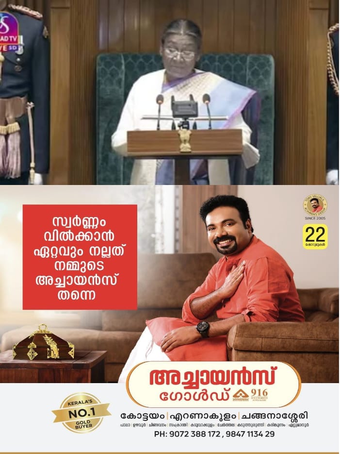 ഇന്ത്യയുടെ കീർത്തി ലോക രാഷ്ട്രങ്ങൾക്കിടയിൽ ഉയർന്നു. കഴിഞ്ഞ ഒരു വർഷത്തിനിടെ പ്രധാന ബില്ലുകൾ അവതരിപ്പിക്കാനായി എന്നും രാജ്യത്ത് ദാരിദ്ര്യ നിർമ്മാർജ്ജനം യാഥാർത്ഥ്യമായെന്നും ദ്രൗപതി മുര്മു പറഞ്ഞു.