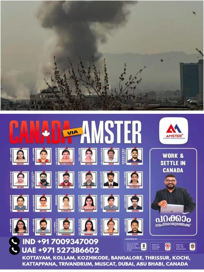 ടെഹ്റാൻ: അമേരിക്കയും ഇസ്രയേലും ഇറാനും തമ്മിലുള്ള സംഘർഷം രൂക്ഷമായതോടെ പശ്ചിമേഷ്യ യുദ്ധക്കളമായി.
