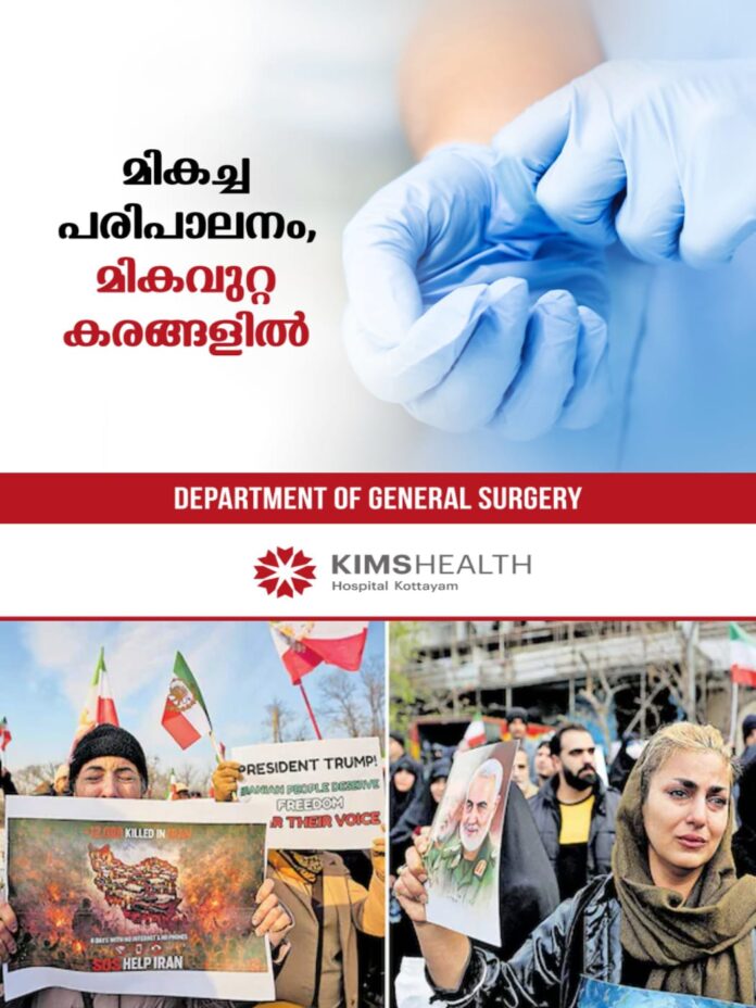 പ്രക്ഷോഭത്തിന്റെ സ്ഥിതി, യഥാർഥ മരണസംഖ്യ തുടങ്ങിയ വിവരങ്ങൾ ശേഖരിക്കാൻ ട്രംപ് സുരക്ഷാ കാബിനറ്റിനെ ചുമതലപ്പെടുത്തിയെന്നും റിപ്പോർട്ടുണ്ട്. അനുനയവുമായി ഖത്തർ രംഗത്തുണ്ടെങ്കിലും യുഎസ്–ഇറാൻ നയതന്ത്രതല ചർച്ചകൾ നിർത്തിവച്ചത് സംഘർഷഭീതി വർധിപ്പിക്കുന്നു.
