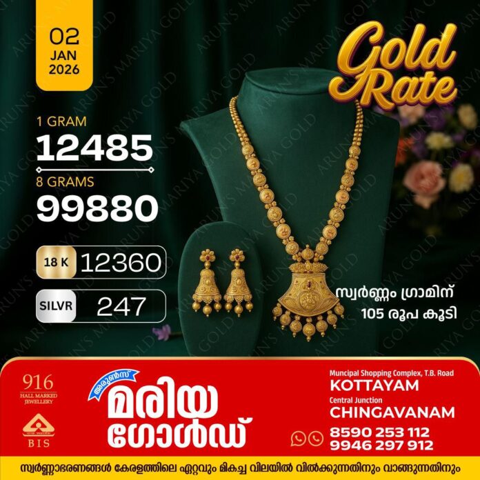 കുതിച്ചുയർന്ന് സ്വർണ വില ; അറിയാം കോട്ടയം അരുൺസ് മരിയാ ഗോള്‍ഡിലെ ഇന്നത്തെ (02/01/2026) സ്വർണ വില