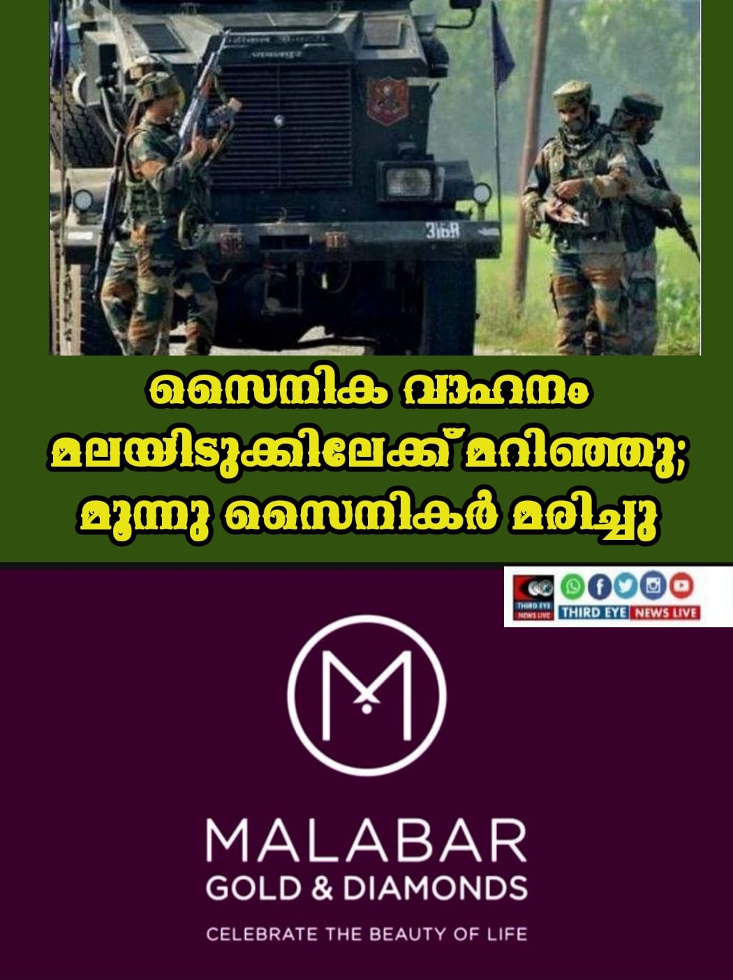 പ്രദേശത്ത് പട്രോളിങ്ങ് നടത്തുകയായിരുന്ന സൈനിക വാഹനം മഞ്ഞുമൂടിയ ട്രാക്കില് നിന്ന് തെന്നിമാറി മലയിടുക്കിലേക്ക് വീഴുകയായിരുന്നുവെന്ന് സേനാ അധികൃതര് വ്യക്തമാക്കി. മൂന്നുപേരുടേയും മൃതദേഹങ്ങള് കണ്ടെടുത്തിട്ടുണ്ട്.