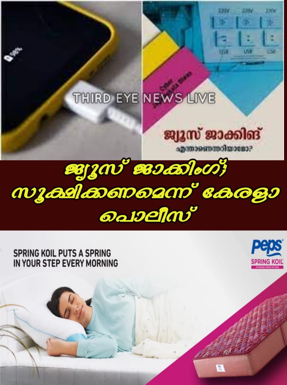 കേരളാ പൊലീസ് കുറിപ്പ്: പൊതു സ്ഥലങ്ങളില് നല്കിയിരിക്കുന്ന സൗജന്യ ചാര്ജിംഗ് പോയിന്റുകള് വഴി ഹാക്കര്മാര്ക്ക് നിങ്ങളുടെ ഡാറ്റ ചോര്ത്താന് കഴിയും. ഇത്തരം പൊതുചാര്ജ്ജിംഗ് പോയിന്റുകളില് നിന്ന് ഉപകരണങ്ങള് ചാര്ജ് ചെയ്യുമ്പോള് ഡാറ്റ അപഹരിക്കപ്പെടുന്നതാണ് ജ്യൂസ് ജാക്കിംഗ് എന്നറിയപ്പെടുന്നത്. വിമാനത്താവളങ്ങള്, ബസ് സ്റ്റേഷനുകള്, റെയില്വേ സ്റ്റേഷനുകള്, പാര്ക്കുകള്, മാളുകള് എന്നിവിടങ്ങളിലെ സൗജന്യ ചാര്ജിംഗ് പോയിന്റുകള് ഹാക്കര്മാര് ലക്ഷ്യമിടുന്നു. ചാര്ജിംഗിനായുള്ള യുഎസ്ബി പോര്ട്ടുകളും പ്രീപ്രോഗ്രാം ചെയ്ത ഡാറ്റ കേബിളും വിവരങ്ങള് ചോര്ത്തുന്നതിന് ഉപയോഗിക്കുന്നു.