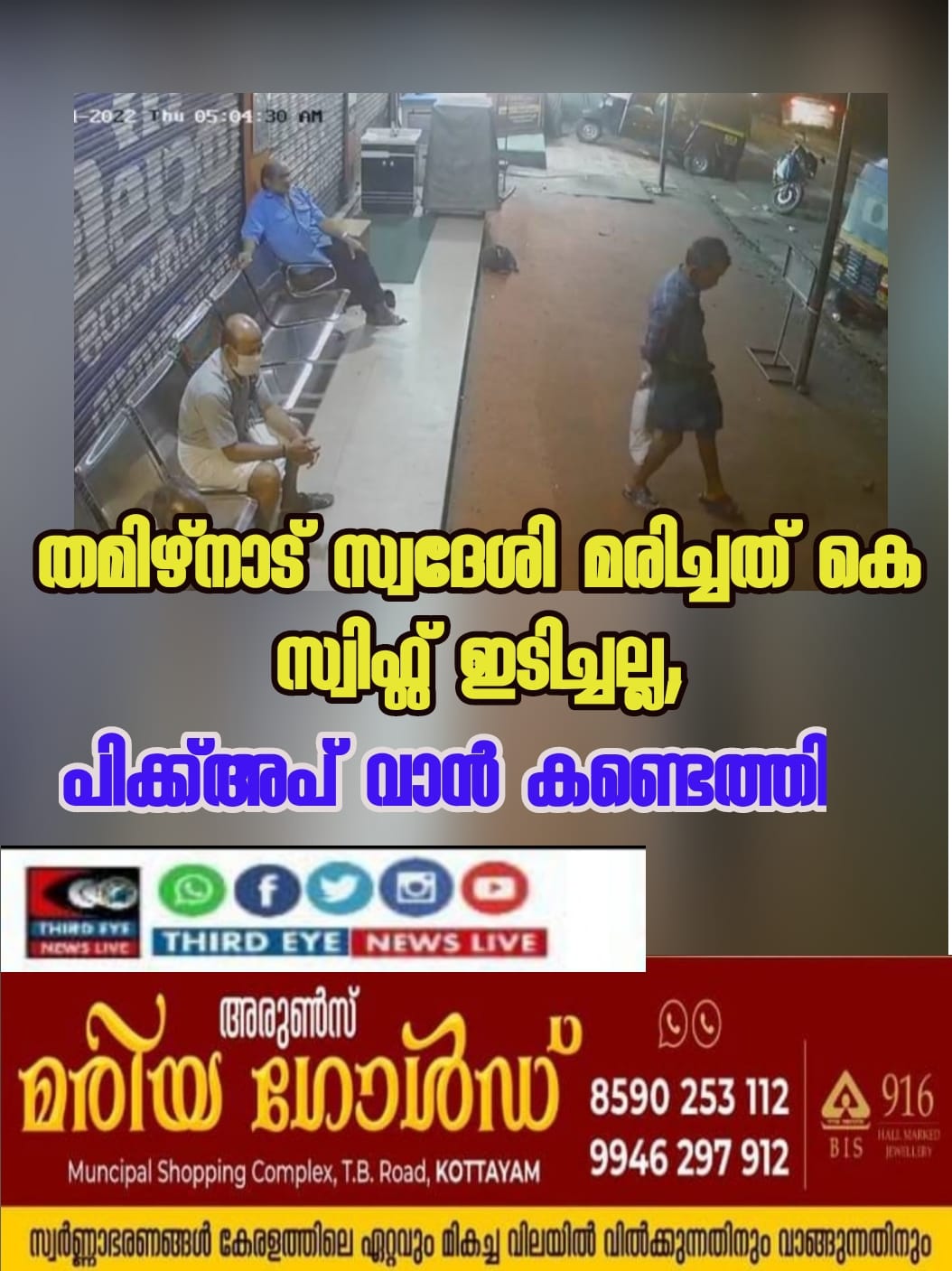 മരിച്ച പരസ്വാമിയെ ആദ്യം ഇടിച്ചത് പിക്ക് അപ്പ് വാനാണെന്ന് സിസിടിവി ദൃശ്യങ്ങളില് നിന്ന് കണ്ടെത്തിയിരുന്നു. ഇതേതുടര്ന്ന് നടത്തിയ പരിശോധനയിലാണ് വാന് കണ്ടെത്തിയത്.