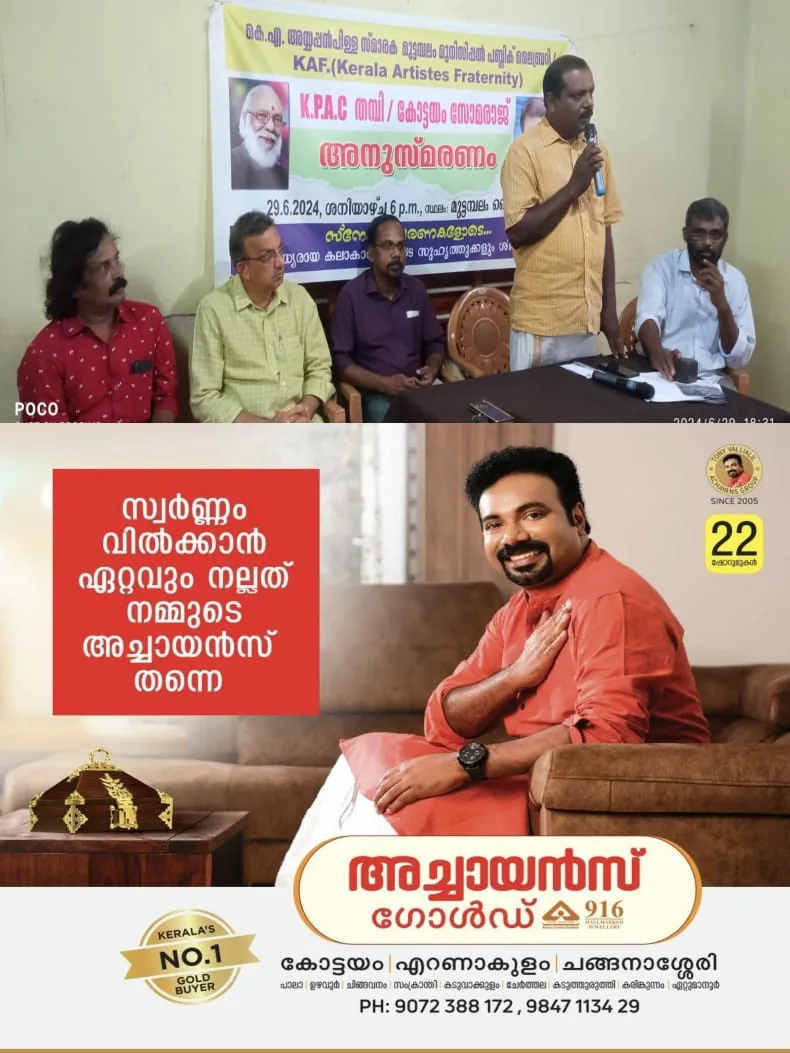 കെ എ അയ്യപ്പൻപിള്ള സ്മാരക മുട്ടമ്പലം മുനിസിപ്പൽ പബ്ലിക് ലൈബ്രറിയും കെഎഎഫ് ( Kerala Artistes Fraternity) സംയുക്തമായി കെ പി എ സി തമ്പി / കോട്ടയം സോമരാജൻ അനുസ്മരണവും മുട്ടമ്പലം ലൈബ്രറിയിൽ നടന്നു.