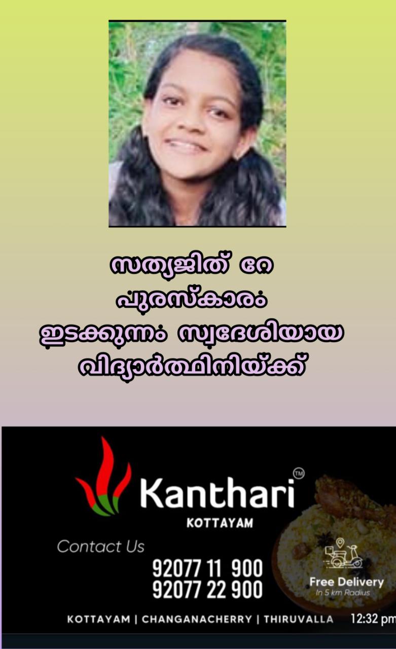 കാഞ്ഞിരപ്പള്ളി: ഇടക്കുന്നം സ്വദേശിയായ വിദ്യാര്ഥിനിക്ക് സത്യജിത് റേ പുരസ്കാരം. ഇടക്കുന്നം മേരിമാതാ സ്കൂളിലെ ഏഴാം ക്ലാസ് വിദ്യാര്ഥിനിയായ മനീഷ സുരേന്ദ്രനാണ് കുട്ടികളുടെ ആര്ട്ടിസ്റ്റിക് വിഭാഗത്തില് അഭിനയത്തിനും പാട്ടിനും അവാര്ഡ് ലഭിച്ചത്. സത്യജിത് റേ ഫിലിം സൊസൈറ്റിയുടെ നേതൃത്വത്തില് തിരുവനന്തപുരത്ത് നടത്തിയ ചടങ്ങില് ഡെപ്യൂട്ടി സ്പീക്കര് ചിറ്റയം ഗോപകുമാറാണ് അവാര്ഡ് നല്കിയത്.