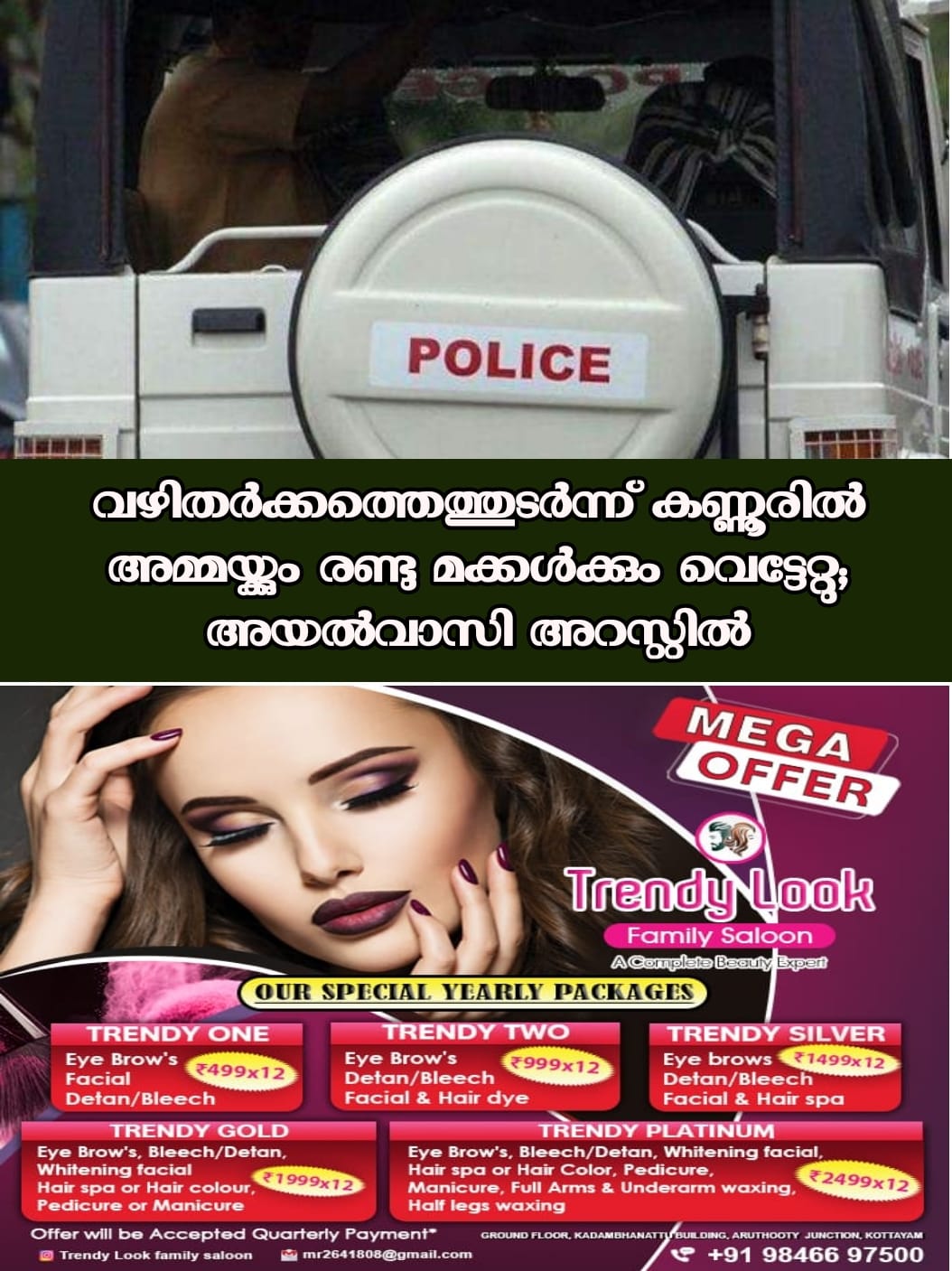 വഴിതർക്കത്തെത്തുടർന്ന് കണ്ണൂരിൽ അമ്മയ്ക്കും രണ്ടു മക്കൾക്കും വെട്ടേറ്റു; അയൽവാസി അറസ്റ്റിൽ