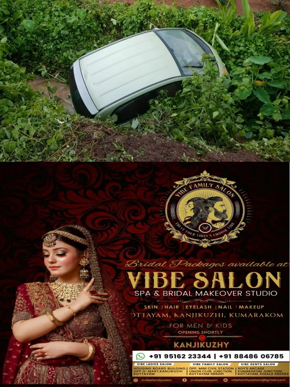 ഇന്ന് വൈകിട്ട് 5: 20 ന് ആയിരുന്നു അപകടമുണ്ടായത്. കറുകച്ചാൽ ഭാഗത്തേയ്ക്ക് സഞ്ചരിച്ച കാർ മഴയിൽ റോഡിൽ നിന്നും തെന്നി മാറിയാണ് അപകടം ഉണ്ടായത്.
