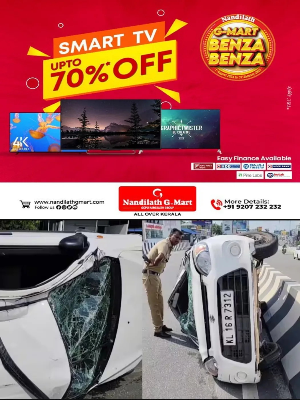 അമിത വേഗതയിലായിരുന്ന കാർ പാലത്തിൻറെ കൈവരിയിൽ തട്ടി നിയന്ത്രണം തെറ്റുകയായിരുന്നു. തുടർന്ന് അര കിലോമീറ്റർ ദൂരം സഞ്ചരിച്ച വാഹനം മറിഞ്ഞു.