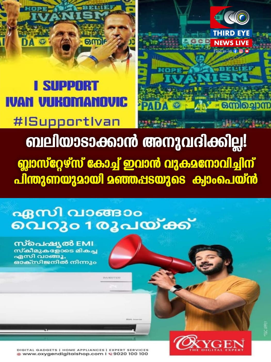 എന്നാൽ ഇവാൻ ക്ലബ്ബിന്റെ പരിശീലകനായി തുടരണമെന്നും അദ്ദേഹത്തെ ബലിയാടാക്കാൻ കൂടെ നിൽക്കില്ലെന്നും ഇതുപോലൊരു പരിശീലകനെ നഷ്ടമാവുന്നത് ഇന്ത്യന് ഫുട്ബോളിനും ബ്ലാസ്റ്റേഴ്സിനും ഗുണം ചെയ്യില്ലെന്നുമാണ് മഞ്ഞപ്പട ഔദ്യോഗിക ഇന്സ്റ്റഗ്രാം പോസറ്റിലൂടെ പറയുന്നത്.