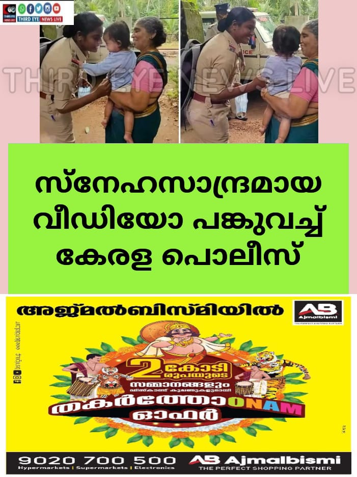 ‘അ‌മ്മ ഡ്യൂട്ടിയ്ക്ക് പോയിട്ട് വരാം വാവേ’; സ്നേഹസാന്ദ്രമായ വീഡിയോ പങ്കുവച്ച് കേരള പൊലീസ്