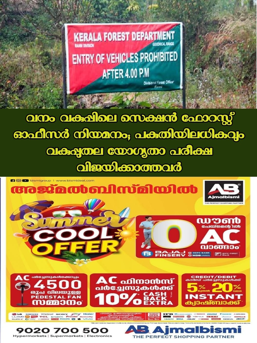 തിരുവനന്തപുരം: വനം വകുപ്പിലെ ആയിരത്തോളം സെക്ഷൻ ഫോറസ്റ്റ് ഓഫീസർമാരിൽ പകുതിയിലധികവും വകുപ്പുതല യോഗ്യതാ പരീക്ഷ വിജയിക്കാത്തവർ. യോഗ്യതയില്ലാത്ത സെക്ഷൻ ഫോറസ്റ്റ് ഓഫീസർമാരെ പഴയ തസ്തികയിലേക്ക് തരംതാഴ്ത്തണമെന്ന സർവീസ് റൂൾ ചട്ടങ്ങൾ മറികടന്ന് നിരവധി പേരാണ് വിവിധ സർക്കിളുകളിൽ വർഷങ്ങളായി ജോലിചെയ്തുവരുന്നത്.