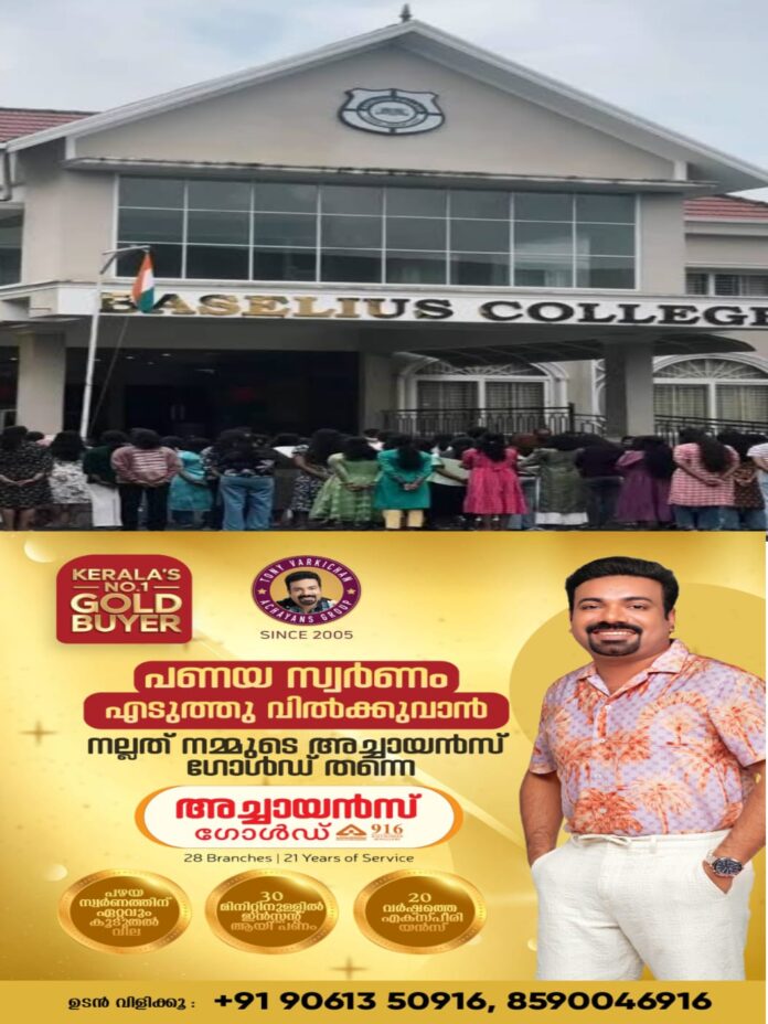 കോട്ടയം : കേരളപ്പിറവി ദിനാഘോഷത്തിന്റെയും മലയാളഭാഷാവാരാഘോഷത്തിൻ്റെയും ഭാഗമായി ബസേലിയസ് കോളജ് മലയാളവിഭാഗത്തിന്റെ ഹൈസ്കൂൾ-ഹയർസെക്കൻ്ററി വിദ്യാർത്ഥികൾക്കായി നവംബർ 1 ശനിയാഴ്ച രാവിലെ 9.30 മുതൽ 4.30 വരെ കലാസാഹിത്യശില്പശാലയായ ‘അക്ഷരക്കൂട്ട്’ നടത്തും.