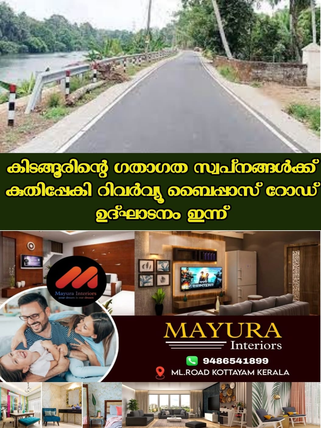 പാലാ : കിടങ്ങൂരിന്റെ ഗതാഗത സ്വപ്നങ്ങൾക്ക് കുതിപ്പേകി റിവർവ്യൂ ബൈപ്പാസ് റോഡ്. ഇന്ന് രാവിലെ 11 മണിക്ക് മുഖ്യമന്ത്രി പിണറായി വിജയൻ ഓൺലൈനിലൂടെ ഉദ്ഘാടനം നിർവഹിച്ച് നാടിന് സമർപ്പിക്കും. സർക്കാരിന്റെ നൂറു ദിന കർമ്മ പരിപാടിയുടെ ഭാഗമായി സംസ്ഥാനത്ത് നിർമാണം പൂർത്തിയായ 18 റോഡുകൾ ഉദ്ഘാടനം ചെയ്യുന്നതിന്റെ ഭാഗമായാണ് ആധുനിക നിലവാരത്തിൽ നവീകരിച്ച കിടങ്ങൂർ ബൈപാസും ഉദ്ഘാടനം ചെയ്യുന്നത്. പൊതുമരാമത്ത്, ടൂറിസം വകുപ്പ് മന്ത്രി പി. എ. മുഹമ്മദ് റിയാസ് ഓൺലൈനായി അധ്യക്ഷത വഹിക്കും. ഇതേസമയം കട്ടച്ചിറ ജങ്ഷനിൽ നടക്കുന്ന ചടങ്ങിൽ റോഡ് സമർപ്പണത്തിന്റെ ശിലാഫലകം മോൻസ് ജോസഫ് എം.എൽ.എ. അനാവരണം ചെയ്യും.