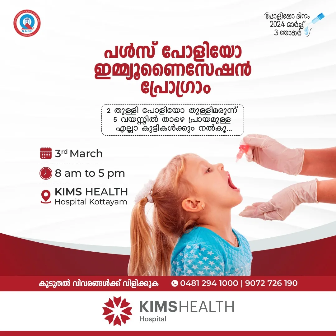 കിംസ്ഹെൽത്ത് ആശുപത്രിയിൽ പൾസ് പോളിയോ ഇമ്മ്യൂനണൈസേഷൻ പ്രോഗ്രാം; മാർച്ച് 3ന് March 1, 2024 WhatsAppFacebookTwitterLinkedin Spread the love കോട്ടയം : കോട്ടയം കിംസ്ഹെൽത്ത് ആശുപത്രിയിൽ മാർച്ച് 3ന് രാവിലെ 8 മുതൽ വൈകിട്ട് 5 വരെ സൗജന്യ പൾസ് പോളിയോ വിതരണം ചെയുന്നു. 5 വയസ് താഴെ പ്രായമുള്ള എല്ലാ കുട്ടികൾക്കും നൽകും. കൂടുതൽ വിവരങ്ങൾക്കും ബുക്കിങ്ങിനമായി വിളിക്കു : 04812941000, 9072726190 Please enable JavaScriptplay-sharp-fill LinkEmbedCopy and paste this HTML code into your webpage to embed.