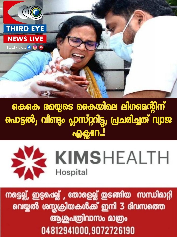 ഡോക്ടറുടെ നിര്ദേശത്തെ തുടര്ന്ന് രമ വീണ്ടും പ്ലാസ്റ്റര് ഇട്ടത്. അന്ന് ഡോക്ടറെ കാണിച്ചപ്പോള് മൂന്ന് ദിവസം കഴിഞ്ഞ് വരാന് ഡോക്ടര് പറഞ്ഞിരുന്നു. എന്നാല് അന്ന് വരാനായില്ല. ഇന്ന് വന്നപ്പോള് ആദ്യത്തെ പ്ലാസ്റ്റര് വെട്ടി. വീണ്ടും ഒരാഴ്ചത്തേക്ക് കൂടി പ്ലാസ്റ്റര് ഇടാന് ഡോക്ടര് പറഞ്ഞതായി രമ പറഞ്ഞു.