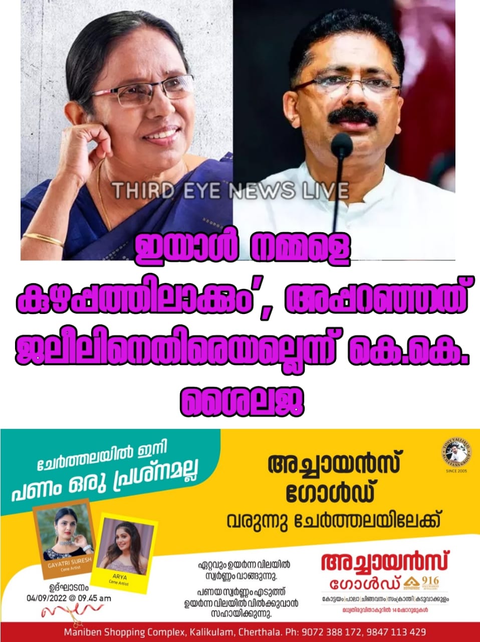ജലീലിന് ചോദ്യം ചോദിക്കാൻ അനുവദിച്ച് സീറ്റിൽ ഇരിക്കവെ ‘ഇയാൾ നമ്മളെ കുഴപ്പത്തിലാക്കും’ എന്ന ആത്മഗതം ശൈലജ നടത്തിയത്. ഇത് മൈക്കിലൂടെ സഭാംഗങ്ങൾ കേൾക്കുകയും ചെയ്തു. ശൈലജയുടെ ഈ പരാമർശം ജലീലിനെതിരെയാണെന്ന തരത്തിൽ പ്രചരിക്കുന്ന സാഹചര്യത്തിലാണ് ഫേസ്ബുക്ക് പോസ്റ്റിലൂടെ വിശദീകരണവുമായി രംഗത്തെത്തിയത്.