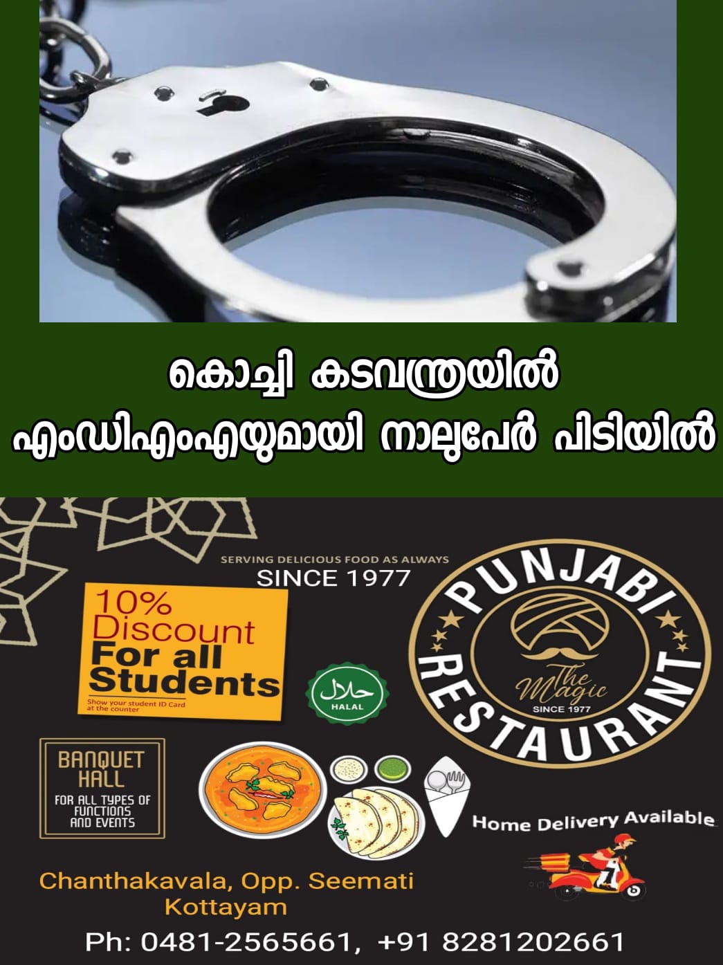 കൊച്ചി കടവന്ത്രയില്‍ എംഡിഎംഎയുമായി നാല് പേര്‍ പൊലീസ് പിടിയില്‍.