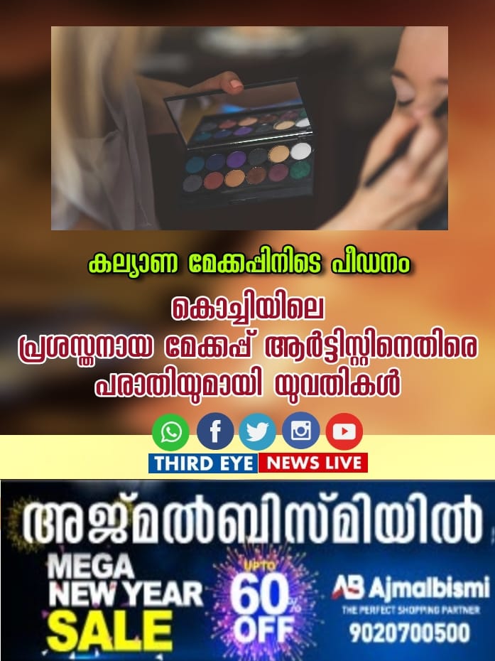കൊച്ചി:വിവാഹ മേക്കപ്പിനിടെ പീഡനം കൊച്ചിയിലെ പ്രശസ്തനായ മേക്കപ്പ് ആര്ടിസ്റ്റിനെതിരെ ലൈംഗിക പീഡന പരാതിയുമായി യുവതികൾ .