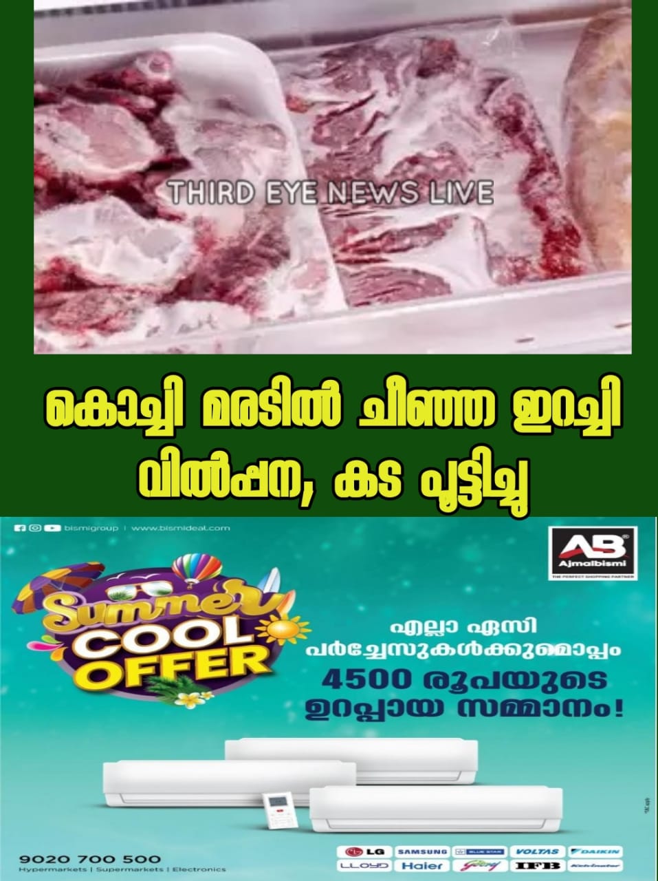 ഇറച്ചി പഴകിയതല്ല എന്നായിരുന്നു ആദ്യം തിരിച്ചുകൊണ്ടുവന്നയാളോട് കടയുടമ പറഞ്ഞിരുന്നത്. എന്നാല് ഇയാളില്നിന്ന് വാങ്ങിയ ഇറച്ചിയുമായി വീണ്ടും ആളുകള് തിരിച്ചെത്തി തിരികെ ഏല്പ്പിക്കുകയായിരുന്നു. തുടര്ന്ന് നഗരസഭ ആരോഗ്യ വിഭാഗത്തെ വിവരമറിയിക്കുകയും അവരെത്തി പരിശോധന നടത്തുകയും ചെയ്തു.