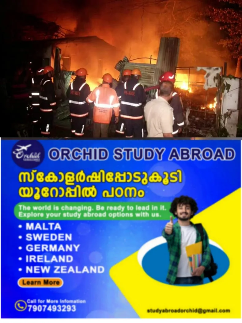 നെടുമ്ബാശേരിയില്‍ വിമാനത്താവളത്തിന് സമീപത്തെ ആപ്പിള്‍ റസിഡന്‍സിയില്‍ അര്‍ധരാത്രിയോടെയാണ് തീപിടിത്തം ഉണ്ടായത്. കാര്‍ പാര്‍ക്കിംഗ് ഏരിയയിലുണ്ടായ അഗ്‌നിബാധയില്‍ ഒരു കാര്‍ പൂര്‍ണമായും 3 കാറുകളും ഏതാനും ബൈക്കുകളും ഭാഗികമായും കത്തിനശിച്ചു. ആളപായമില്ല. അഗ്‌നിരക്ഷാ സേനയെത്തി തീയണച്ചു. ഒരു മുറിയില്‍ കുടുങ്ങിയ പെണ്‍കുട്ടിയെ വൈദ്യുതി പൂര്‍ണമായി വിച്ഛേദിച്ച ശേഷം ഏണി ഉപയോഗിച്ച് രക്ഷപ്പെടുത്തി. മുറിയിലെ എസിയും വയറിംഗും കത്തി നശിച്ചു.