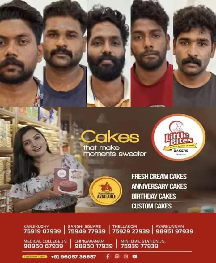 സംഭവത്തിൽ സഹോദരങ്ങളായ എറിയാട് സ്വദേശികളായ ഏറ്റത്ത് വീട്ടിൽ ഷാലറ്റ് (28 ), ഫ്രോബൽ (29), എറിയാട് നീതിവിലാസം സ്വദേശി വാഴക്കാലയിൽ വീട്ടിൽ അഷ്ക്കർ (35), എറിയാട് സ്വദേശികളായ കാരേക്കാട് വീട്ടിൽ ജിതിൻ (30), പള്ളിപറമ്പിൽ വീട്ടിൽ ഷാഫി (29) എന്നിവരെ കൊടുങ്ങല്ലൂർ പൊലീസ് അറസ്റ്റ് ചെയ്തു.