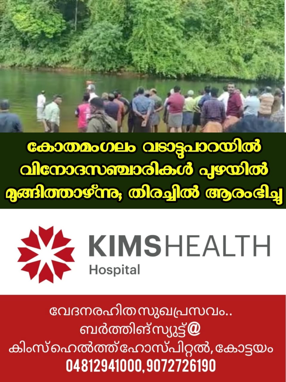 കോതമം​ഗലം വടാട്ടുപാറയിൽ വിനോദസഞ്ചാരികൾ പുഴയിൽ മുങ്ങിത്താഴ്ന്നു; ഫോട്ടോ എടുക്കുന്നതിനിടയിൽ കാൽവഴുതി അപകടത്തിൽപ്പെട്ടത് അഞ്ചം​ഗസംഘത്തിലെ രണ്ടുപേർ; തിരച്ചിൽ ആരംഭിച്ചു