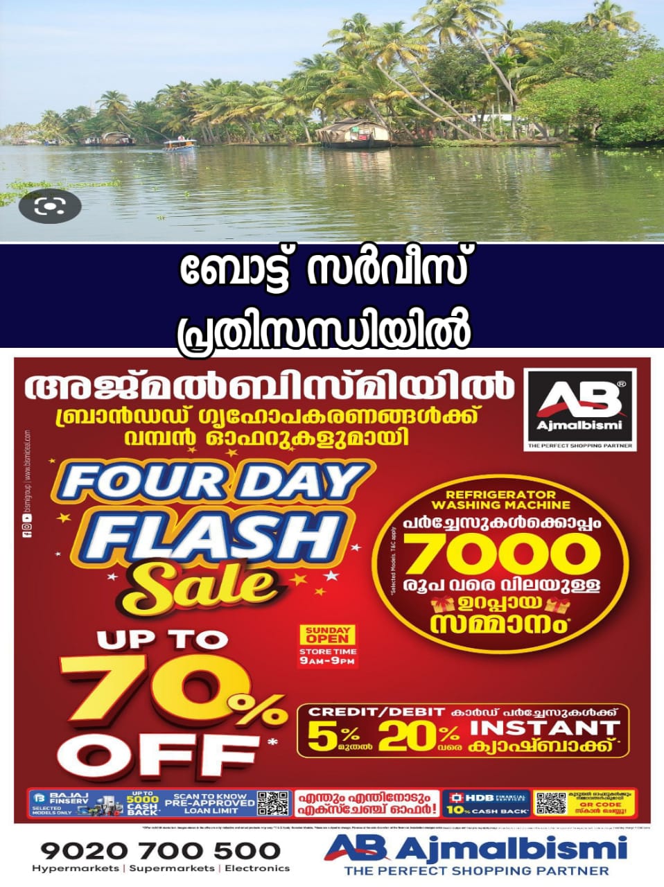 അതിനാല്, കോടിമതയില് നിന്നുള്ള ബോട്ട് സര്വീസ് നിര്ത്തിവച്ചു. ഇപ്പോള്, കാഞ്ഞിരത്ത് നിന്നുമാണ് ബോട്ട് സര്വീസ് ആരംഭിക്കുന്നത്. കോട്ടയം ആലപ്പുഴ ജലപാതയില് അഞ്ചോളം പൊക്കുപാലങ്ങളാണ് ഉള്ളത്. ഇതില് ചുങ്കത്തില് മുപ്പത് ഇരുമ്ബുപാലം വൈദ്യുതി ഉപയോഗിച്ച് ബോട്ട് വരുമ്ബോള് ഉയര്ത്തുന്ന വിധത്തിലുള്ള പാലമാണ്. എന്നാല്, 2013 ല് സ്ഥാപിച്ച പാലം അടിക്കടി തകരാറിലാകുന്നതുകൊണ്ട് ബോട്ട് സര്വീസ് തടസപ്പെടുന്നു.