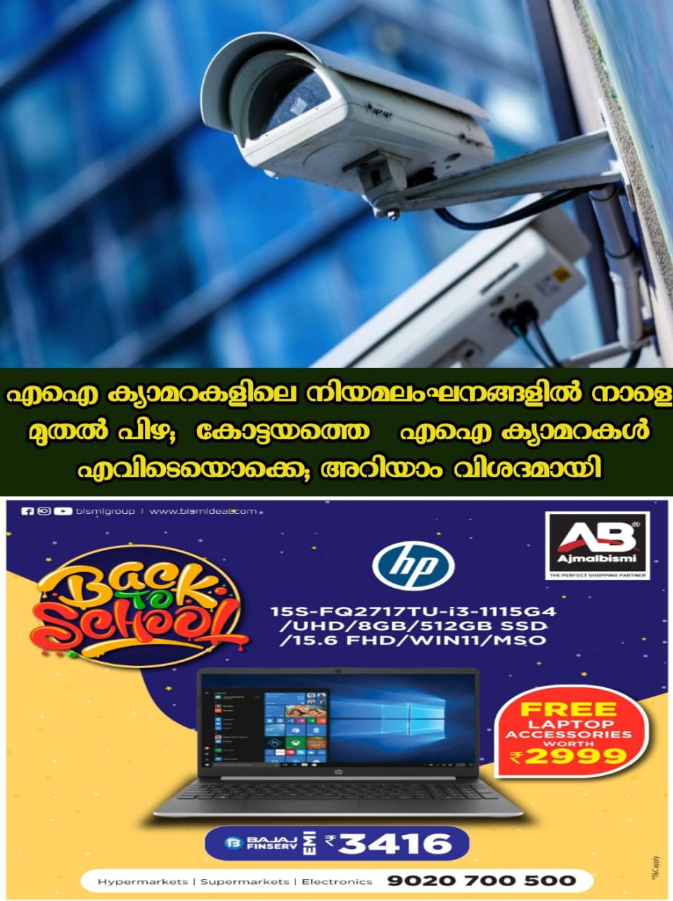 ആധുനിക സാങ്കേതികവിദ്യ ഉപയോഗപ്പെടുത്തി കേരള മോട്ടോർ വാഹന വകുപ്പിന്റെ എൻഫോഴ്സ്മെന്റ് പ്രവർത്തനങ്ങൾ ശക്തിപ്പെടുത്തി റോഡപകടങ്ങൾ കുറക്കുകയും ഗതാഗത നിയമലംഘനം തടയുകയെന്ന ലക്ഷ്യത്തോടെ സംസ്ഥാനത്ത് നാളെ മുതൽ എ ഐ ക്യാമറകൾ പ്രവർത്തിച്ചു തുടങ്ങും. ക്യാമറയിൽ പതിയുന്ന നിയമലംഘനങ്ങൾക്ക് നാളെ മുതൽ പിഴ ഈടാക്കും. കോട്ടയത്തെ വിവിധ സ്ഥലങ്ങളിലായി ഘടിപ്പിച്ചിരിക്കുന്ന എ ഐ ക്യാമറകൾ എവിടെയൊക്കെന്നറിയാം
