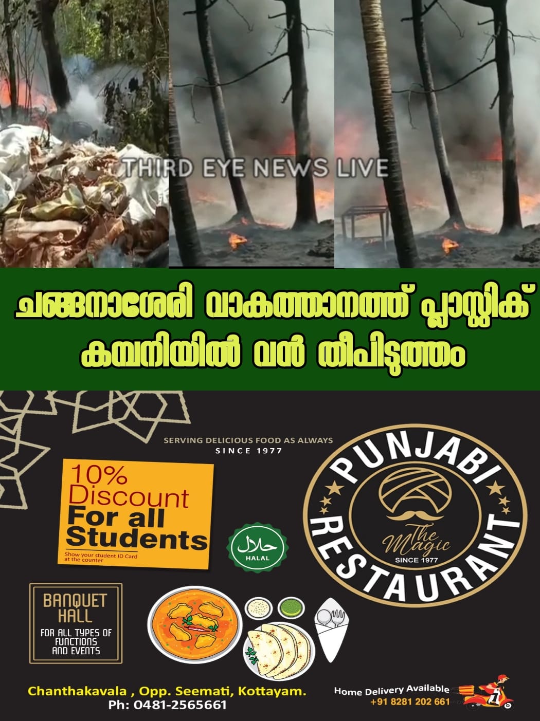 കോട്ടയം, ചങ്ങനാശ്ശേരി പാമ്പാടി,തുടങ്ങിയ എഴോളം സ്ഥലങ്ങളിൽ നിന്നുള്ള ഫയർഫോഴ്സ് എത്തി തീ അണയ്ക്കാനുള്ള ശ്രമം നടത്തി വരികയാണ്. ഈരാറ്റുപേട്ട സ്വദേശി പ്ലാസ്റ്റിക് കമ്പനിയാണ് കത്തിയത്.