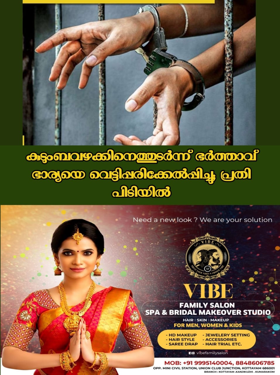 കോട്ടയം ചിങ്ങവനത്ത് കുടുംബവഴക്കിനെത്തുടർന്ന് ഭർത്താവ് ഭാര്യയെ വെട്ടിപ്പരിക്കേൽപ്പിച്ചു; ആക്രമണം തടയാനെത്തിയ യുവതിയുടെ വല്യമ്മയ്ക്കും പരിക്കേറ്റു; പ്രതി പിടിയിൽ