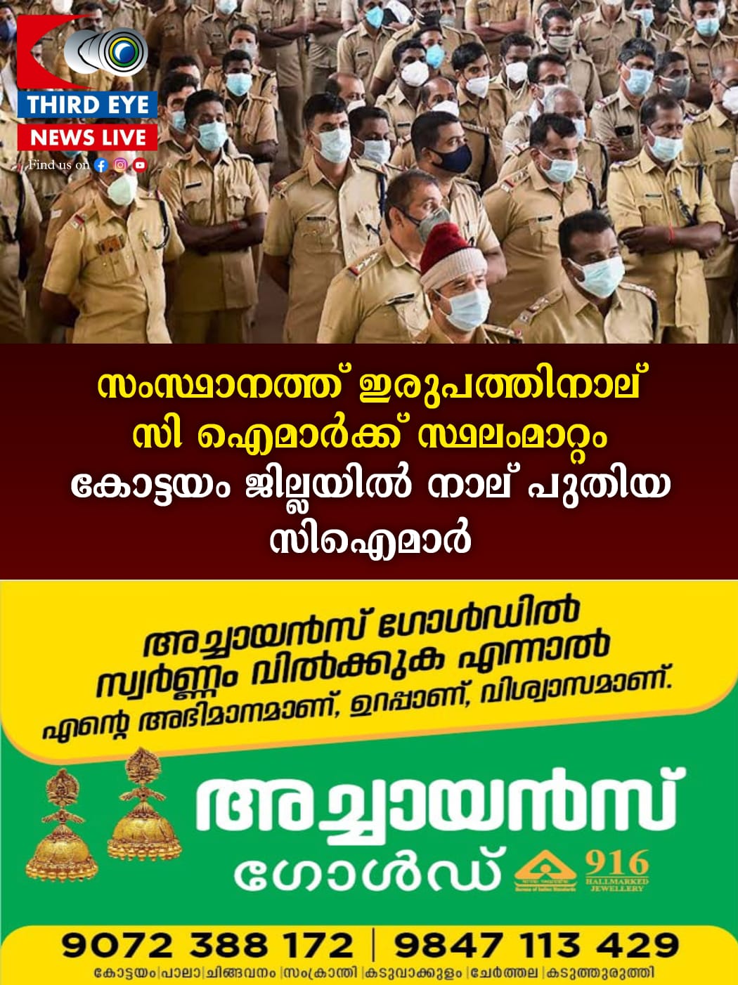 പൊഴിയൂരിൽ നിന്ന് വിനുകുമാർ കെ എ സൈബർ പൊലീസ് സ്റ്റേഷൻ തിരുവനന്തപുരം റൂറലിലേക്കും , ഏറ്റുമാനൂരിൽ നിന്ന് രാജേഷ് കുമാർ സി ആറിനെ വടകര കൺട്രോൾ റൂമിലേക്കും, ബദിയടുക്കയിൽ നിന്ന് പ്രസാദ് എബ്രഹാം വർഗീസിനെ ഏറ്റുമാനൂരിലേക്കും വിജിലൻസിൽ നിന്ന് അനൂപ് ജി എയെ തൃക്കൊടിത്താനത്തേക്കും, തൃക്കൊടിത്താനത്തുനിന്ന് അജീബിനെ പള്ളിക്കത്തോട്ടിലേക്കും, പള്ളിക്കത്തോട്ടിൽ നിന്ന് പ്രദീപിനെ വിജിലൻസിലേക്കും, തൃശ്ശൂർ കാട്ടൂരിൽ നിന്ന് മഹേഷ് കുമാറിനെ കറുകച്ചാലിലേക്കും എടവണ്ണയിൽ നിന്ന് സജിത്തിനെ മലപ്പുറം ക്രൈംബ്രാഞ്ചിലേക്കും, കറുകച്ചാലിൽ നിന്ന് ഋഷികേശൻ നായരെ കാട്ടൂരിലേക്കും സ്ഥലം മാറ്റി.
